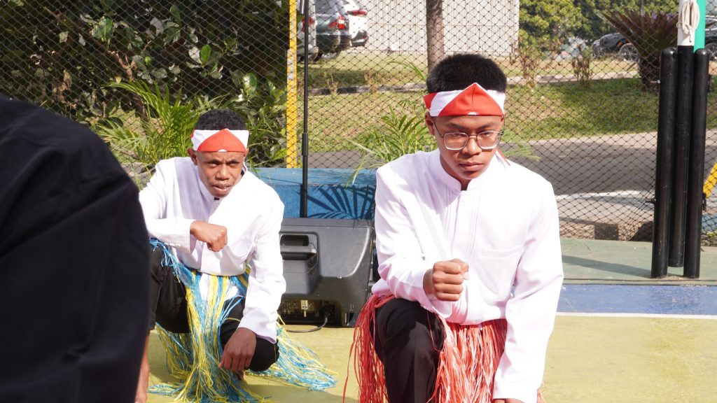 Penampilan tarian adat oleh siswa SMA DTBS Putra sesaat setelah upacara Kemerdekaan berlangsung pada (17/8/2024), di Kawasan Eco Pesantren 1 Daarut Tauhiid.